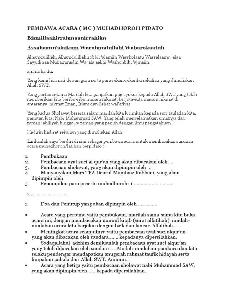 Koleksi contoh teks mc formal bahasa arab pdf.